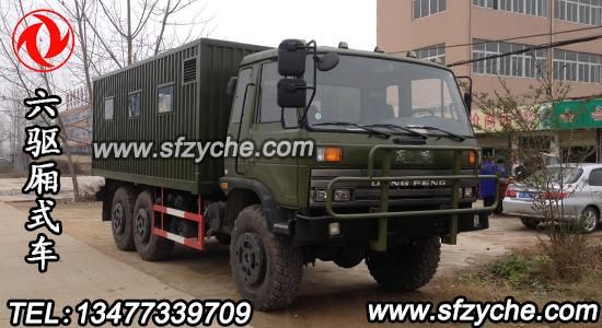 東風(fēng)軍用廂式越野卡車(chē)在湖北隨州正式下線(xiàn),送往新疆喀什征戰(zhàn)沙場(chǎng),六驅(qū)越野廂式車(chē)采用東風(fēng)六驅(qū)軍卡底盤(pán)EQ2162GS,發(fā)動(dòng)機(jī)采用康明斯190馬力中冷增壓,東風(fēng)軍用分動(dòng)箱,東風(fēng)6擋變速箱,東風(fēng)軍工車(chē)橋,全部為軍檢合格產(chǎn)品,采用12.5R20型子午線(xiàn)大花紋沙漠越野胎,車(chē)廂整體采用1.5mm瓦楞板,全鋼骨架設(shè)計(jì),更加安全牢固,貨箱尺寸5100*2500*2100.東風(fēng)越野廂式卡車(chē)圖片如下: