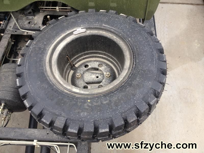 11R18型越野胎主要適用于軍用車輛行駛,可同時滿足軍用車輛在好路面上的高速行駛及在路況較差或無路情況下的越野行駛。該胎花紋采用無向塊狀設(shè)計,主行駛面花紋溝深度較淺且以縱向花紋溝為主,橫向花紋溝寬度較小,可提高輪胎的高速行駛性能、乘坐舒適性和操作穩(wěn)定性;胎肩部位的花紋以橫向花紋溝為主,花紋溝較寬較深,在越野時,對路面的抓著力強大,牽引力優(yōu)越、通過性能好,同時有利于花紋的散熱、排水和自潔性能。東風越野胎:www.hnpengtu.com