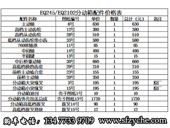 東風(fēng)軍車EQ245/EQ2100E/EQ2100E6D六驅(qū)軍車分動(dòng)箱配件報(bào)價(jià)表