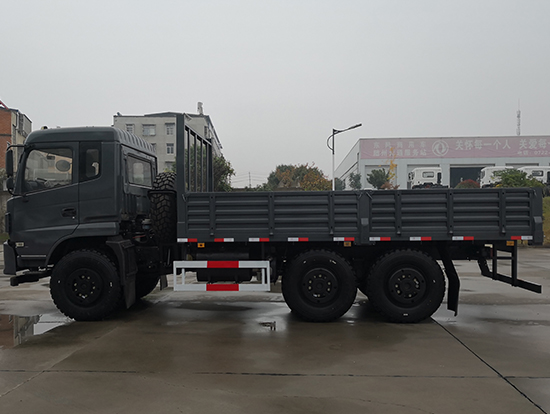 東風(fēng)新款國五六驅(qū)越野貨車配置簡(jiǎn)介:采用東風(fēng)EQ2220GD5DJ型越野汽車底盤,東風(fēng)D913豪華駕駛室,6×6驅(qū)動(dòng),康明斯ISB190 50國五發(fā)動(dòng)機(jī),六檔變速箱,標(biāo)配315/80R22.5 20PR可換為12.5R20真空越野輪胎,軸距3500+1250mm,加厚雙層大梁,電動(dòng)玻璃,方向助力,斷氣剎,ABS,備胎一套,大箱長(zhǎng)度5米,墻板高度600mm。