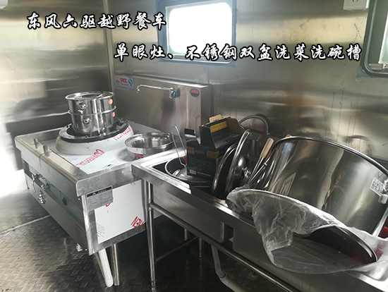 東風六驅(qū)越野餐車車輛概述:采用東風國五越野底盤改裝, 車廂材質(zhì)采用外冷軋鋼板,內(nèi)飾不銹鋼,中間保溫層,隱藏式上車踏步,頂部安全窗,兩個副食灶,一個蒸飯車,抽油煙機,平冷柜,水路,電路,油路等。