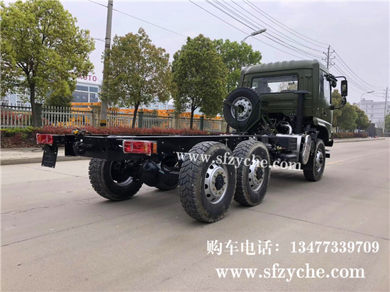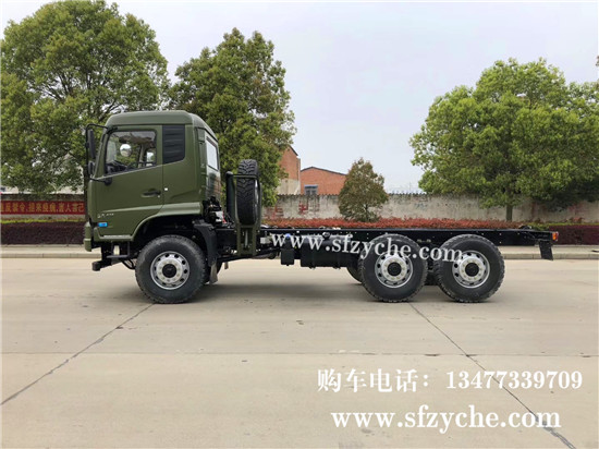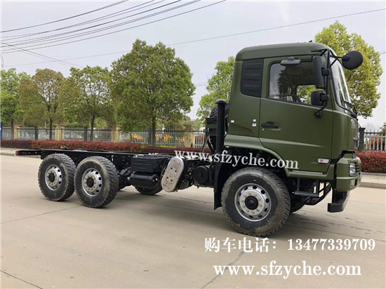 國(guó)六排放東風(fēng)天錦六驅(qū)越野底盤配置,東風(fēng)天錦D530一排半駕駛室,6×6驅(qū)動(dòng),康明斯B6.2NS6B210國(guó)六發(fā)動(dòng)機(jī)210馬力,最大扭矩:850N.m/1100-1700rpm,排量6.2L、韶齒手動(dòng)六檔變速箱,東風(fēng)德納車橋,前驅(qū)動(dòng)橋5噸雙聯(lián)半軸結(jié)構(gòu),中后橋都為軍工德納5噸驅(qū)動(dòng)橋,315/80R22.5大花紋越野輪胎,280mm雙層大梁,軸距3500+1250mm,電動(dòng)玻璃,方向助力,斷氣剎,ABS,大燈自動(dòng)調(diào)節(jié),自動(dòng)調(diào)整臂,原廠空調(diào)。車架可利用尺寸5000mm。