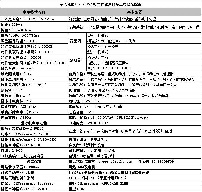 東風(fēng)EQ2070FFZ4D型高性能越野特種車是一款技術(shù)先進(jìn)、性能卓越、多功能、全天候的特種越野車,也是中國(guó)上唯一在沙漠、山區(qū)等極其艱苦環(huán)境條件下顯示高技術(shù)、高性能和高可靠性的軍用和特殊民用汽車。該產(chǎn)品,無(wú)論是越高山峻嶺、穿林海雪原,還是闖茫茫沙漠、涉沼澤泥潭,無(wú)論是用作防彈運(yùn)兵、戰(zhàn)地救護(hù),還是用作森林消防和野外勘探,它都能以超一流的越野通過(guò)能力、高涉水性,可靠耐久性和優(yōu)異的上裝適用能力,令世人嘆為觀止,當(dāng)之無(wú)愧地成為挑戰(zhàn)越野極限的明星。如需了解更多EQ2070FZ4D型越野四驅(qū)汽車的詳細(xì)參數(shù)和配置請(qǐng)立即撥打銷售熱線:13477339709 李經(jīng)理 0722-7053060 業(yè)務(wù)QQ:530233927,微信號(hào):13477339709 ,東風(fēng)越野卡車網(wǎng)址:www.hnpengtu.com