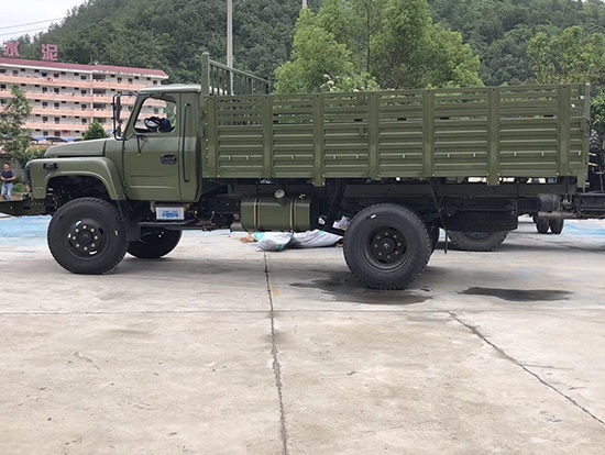 東風牌EQ1093F型四驅(qū)載貨汽車詳細配置:采用康明斯B170-33柴油發(fā)動機,機械式六檔變速箱,軸距3950mm,單片干式φ325mm離合器,2.7T驅(qū)動前橋, 7.8T驅(qū)動后橋,232×75×6.5 mm車架,9.00-20尼龍?zhí),東風140尖頭單排駕駛室,斷氣剎,動力轉(zhuǎn)向。