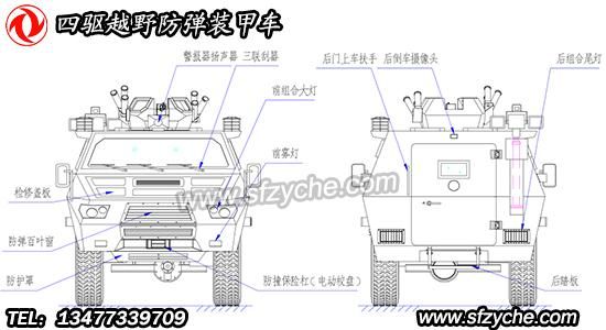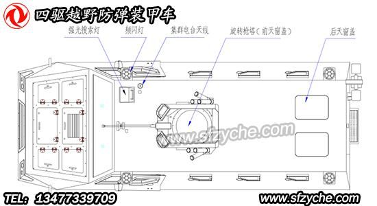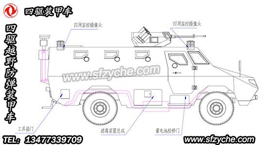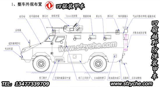 四驅防爆裝甲車詳細布置圖如下: